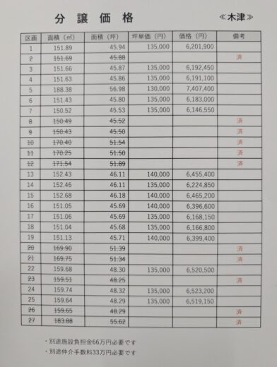 特記事項 業者客付けの場合の仲介手数料は買い別れとなります 全27区画(坪単価13~14万円)( 45.5坪~56.9坪)